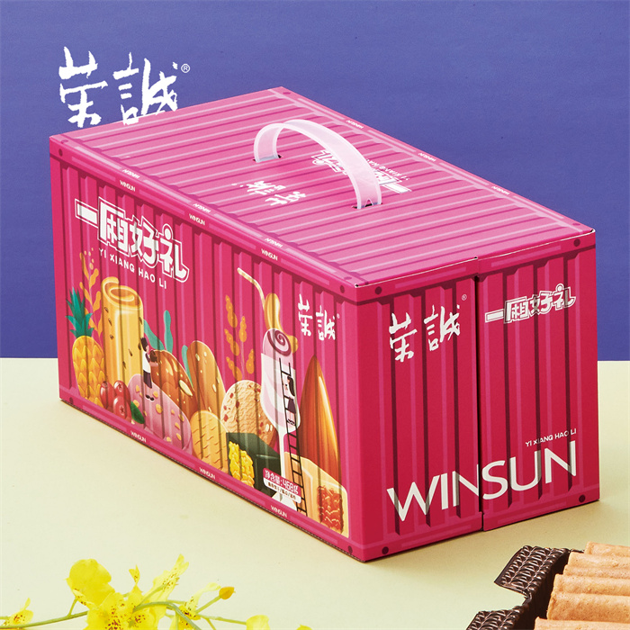 【編 碼】 CGZ2506 【條形碼】 6925755536809 【尺 寸】 32x16x16cm 【凈含量】 468g 【規(guī) 格】 468gx12盒/箱 【內(nèi)容物】  13.5g澳式金泊雞蛋卷(芝麻原味)x12,13.5g澳式金泊雞蛋卷(咸蛋黃)x6,13.5g澳式金泊雞蛋卷(海苔)x6,10g香焙花生酥x4,10g香焙蔓越莓酥x4,8g原味奶油曲奇x4,8g巧克力味曲奇x4
